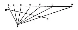 - He gives the theory of involution of six points, but his definition of "involution" is not quite the same as the modern definition, first found in Fermat, but really introduced into geometry by Chasles. On a line take the point A as origin (souche), take also the three pairs of points B and H, C and G, D and F; then, says Desargues, if , the six points are in "involution." If a point falls on the origin, then its partner must be at an infinite distance from the origin. If from any point P lines be drawn through the six points, these lines cut any transversal MN in six other points, which are also in involution; that is, involution is a projective relation.