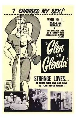 Glen or Glenda is a 1953 film about a police inspector who, upon discovering the suicide of a known transvestite, seeks enlightenment from a psychiatrist familiar with the phenomenon. It is considered one of the worst movies ever made.