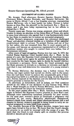 - Gloria Allred. 1990 Gloria Allred testimony before United States Senate Committee on the Judiciary. Publication Title: Hearings on the Nomination of David H. Souter to be Associate Justice of the Supreme Court of the United States, September 13, 14, 17, 18, and 19, 1990. Category: Congressional Committee Materials. Collection: Additional Government Publications. Publication name: Supreme Court Nomination Hearings. Date issued: September 13, 1990. Congress. 101st Congress, 2nd Session. www.gpo.gov, more info at S. Hrg. 101-1263 at www.gpo.gov