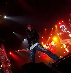 Guns N' Roses is an American hard rock/heavy metal band that formed in Los Angeles, California, in 1985. The classic lineup as signed to Geffen Records in 1986 consisted of vocalist Axl Rose, lead guitarist Slash, rhythm guitarist Izzy Stradlin, bassist Duff McKagan, and drummer Steven Adler.