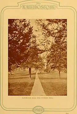 One snowy evening she wound up at the Akpha Chi Sigma house, where she was well known. These were good friends, and when the party broke up at 1:30 or so, she happily followed a group of three back to fourth-passage Cushing, where they lived on the fourth floor. They weren't paying too much attention until they got in a fourth-floor room and noticed continued wagging. It was too late and snowy to do anything about her, so they just hit the sack and turned out the lights. She curled up on the rug.