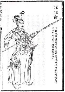 Han Xin (died 196 BC) was a military general who served Liu Bang (Emperor Gaozu of Han) during the Chu–Han Contention and contributed greatly to the founding of the Han dynasty. Han Xin was named as one of the "Three Heroes of the early Han dynasty" (漢初三傑), along with Zhang Liang and Xiao He.