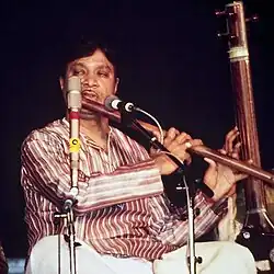 Hariprasad Chaurasia (born July 1, 1938) is a renowned Indian flute player whose repertoire is in Eastern Classical music. He is an innovator and a traditionalist. He is as credited for his musicianship as for his technical ability on the native instruments. He has been honoured with several awards of which the most prominent ones are the Padma Vibhushan, the second highest civilian award of India, and the distinction of Chevalier dans l'Ordre des Arts et des Lettres (Knight of the Order of Arts and Letters) of France. He also serves as the Artistic Director of the World Music Department at the Rotterdam Music Conservatory in the Netherlands.