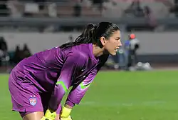 Hope Amelia Solo (born July 30, 1981) is an American soccer goalkeeper and a two-time Olympic gold medalist. She has been goalkeeping for the United States women's national soccer team since 2000.