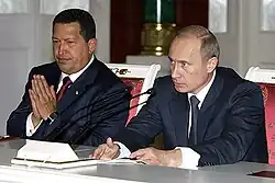 - Hugo Chávez on the Islamic Republic Medal ceremony at Tehran University in Iran. July 30th, 2006.[30]