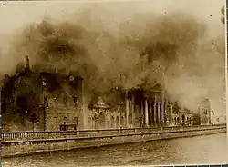 - As the Treaty terms were being hotly debated in the Dail Eireann- the Irish Parliament- the split in the ranks of the Irish Republican Army widened and flared into open war in the last week of June. Anti-Treaty forces (the 'Irregulars') had occupied the judiciary complex at the Four Courts by the Liffey, and were defying the Provisional Government and refusing to budge. From across the river, the National Army opened fire with artillery- the first shots rang out in a cruel civil war which was to last for two years, but whose effects were to be felt for much longer.