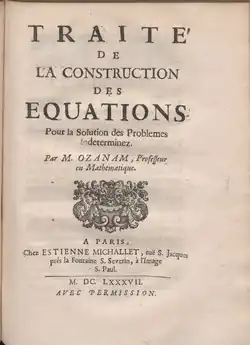 Jacques Ozanam (16 June 1640, in Sainte-Olive, Ain – 3 April 1718, in Paris) was a French mathematician.