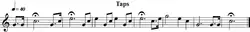 He played it all that way, with a paused then hurried rhythm that no metronome could follow. There was no placid regimented tempo to Taps. The notes rose high in the air and hung above the quadrangle. They vibrated there, caressingly, filled with an infinite sadness, an endless patience, a pointless pride, the requiem and epitaph of the common soldier, who smelled like a common soldier, as a woman had once told him. They hovered like halos over the heads of sleeping men in the darkened barracks, turning all the grossness to the beauty that is the beauty of sympathy and understanding. Here we are, they said, you made us, now see us, dont close your eyes and shudder at it; this beauty, and this sorrow, of things as they are.- Robert E. Lee Prewitt playing Taps (Sound file of Taps)