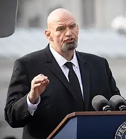 John Karl Fetterman (born August 15, 1969) is an American politician serving as United States senator from Pennsylvania since 2023. A member of the Democratic Party, he previously served as the 34th Lieutenant Governor of Pennsylvania from 2019 to 2023, as well as the Mayor of Braddock from 2005 to 2019. Fetterman was a candidate in the United States Senate election in Pennsylvania for 2016 and was elected when he ran again in 2022.
