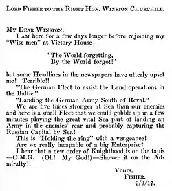 Fear God and Dread Nought: The Correspondence of Admiral of the Fleet Lord Fisher of Kilverstone. Vol 1 (1953), p. 181.