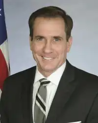 John Kirby (born June 3, 1963) is a retired United States Navy rear admiral serving as White House National Security Communications Advisor since 2022. He previously served in the Biden administration as Pentagon Press Secretary and Assistant to the Secretary of Defense for Public Affairs from 2021 to 2022. He worked as a military and diplomatic analyst for CNN from 2017 to 2021. He served in the Obama administration as Pentagon Press Secretary from 2013 to 2015 and as the spokesperson for the United States Department of State and Assistant Secretary of State for Public Affairs from 2015 to 2017.