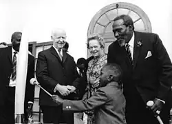 Jomo Kenyatta (20 October 1892? – 22 August 1978) was an African social activist and politician; the first Prime Minister (1963–1964) and first President (1964–1978) of an independent Kenya; born Kamau wa Ngengi, he was baptized John Peter in 1914, later changing his name to Johnstone Kamau, and finally to Jomo Kenyatta.