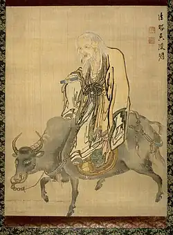 On his way out, someone stopped Lao Tzu and asked if he would write down the tenets of his ethos before leaving town. Being a lazy man, Lao Tzu lodged his water buffalo against an abutment long enough to write the Tao Te Ching's 81 short verses. When finished, he kicked his water buffalo into gear and, tossing his ringer to the man, rode off into the misty horizon of legend and myth.