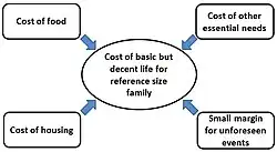A living wage is the minimum income necessary for a worker to meet their basic needs (food, housing, and other essentials such as health care and clothing). The goal of a living wage is to allow a worker to afford a basic but decent standard of living. Due to the flexible nature of the term "needs", there is not one universally accepted measure of what a living wage is and as such it varies by location and household type.
