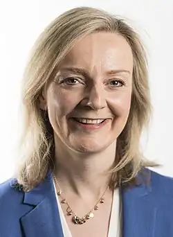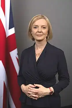 Mary Elizabeth Truss (born 26 July 1975), known as Liz Truss, is a former Prime Minister of the United Kingdom and Leader of the Conservative Party. She resigned from these posts on 20 October 2022, after only six weeks. Before her appointment as the British PM on 6 September 2022, in succession to Boris Johnson, she served as Secretary of State for Foreign, Commonwealth and Development Affairs from September 2021. Earlier in her career, she held posts as Secretary of State for International Trade and President of the Board of Trade from July 2019 in Boris Johnson's cabinet. Following the resignation of Amber Rudd, she gained the additional position as the Minister for Women and Equalities in September 2019.