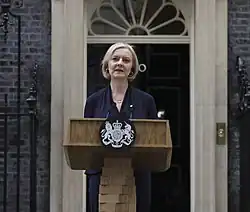 I have therefore spoken to His Majesty The King to notify him that I am resigning as Leader of the Conservative Party.- "Prime Minister Liz Truss's statement in Downing Street" as cited on the UK government website (20 October 2022).