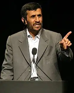 Mahmoud Ahmadinejad (born October 28, 1956) is an Iranian principlist and nationalist politician who was the sixth President of the Islamic Republic of Iran. He became president on 6 August 2005 after winning the 2005 presidential election and left the post in August 2013. Previously he served as Mayor of Tehran.