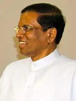 Maithripala Sirisena (Sinhalese: මෛත්රිපාල සිරිසේන; Tamil: மைத்திரிபால சிறிசேன; born 3 September 1951) is the 7th and current president of Sri Lanka since January 9, 2015, who is preceded by Mahinda Rajapaksa. He is the first president that hails from the North Central Province of Sri Lanka.