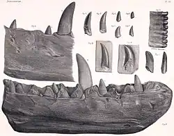 - Megalosaurus had large blade-like teeth set in sockets, not adhering to the bone of the jaw as is the case among lizards. Buckland noted this important diagnostic feature, yet he failed to appreciate its importance. For it gave unassailable proof that Megalosaurus was not a gigantic lizard; it was a gigantic reptile with socketed teeth, such as are possessed by the crocodiles, yet it was not a crocodile, either—Buckland was sure of that. In short, Megalosaurus was something new, a reptile the like of which had never before been imagined.