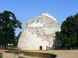 - Alarmed by the famine of 1770, captain John Garstin built this huge granary Golghar for the British army in 1786. The massive structure is 29 m high and the walls are 3.6 m wide at the base. The winding stairway around this monument offers a brilliant panoramic view of the city and the Ganga flowing by.