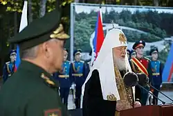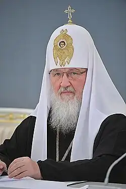 Kirill or Cyril (Russian: Кирилл, Church Slavonic: Ст҃ѣ́йшїй патрїа́рхъ кѷрі́ллъ, secular name Vladimir Mikhailovich Gundyayev, Russian: Владимир Михайлович Гундяев; born 20 November 1946) is a Russian Orthodox bishop. He became Patriarch of Moscow and all Rus' and Primate of the Russian Orthodox Church on 1 February 2009.
