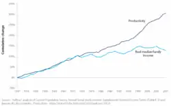 - Let's look at real wages... wages adjusted for inflation. ...In the late 1970s there was a definite phase transition. Up to that point, for the previous two generations, the wages for both unskilled and manufacturing workers had been growing quite rapidly and almost linearly... [W]ages for manufacturing workers increased... fourfold... a quite remarkable achievement... [I]t was unprecedented in human history to see such a long-term sustained increase in general well-being. Then... the wages stagnated, or even declined. So what was the reason?