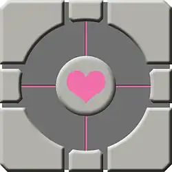 - This Weighted Companion Cube will accompany you through (most of) the test chamber. Please take care of it.