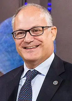 Roberto Gualtieri (born 19 July 1966) is an Italian university professor and politician of the Democratic Party (PD). Since 5 September 2019, he has been serving as Minister of Economy and Finances in the government of Prime Minister Giuseppe Conte. He previously was a member of the European Parliament from 2009 to 2019, where he chaired the influential Economic and Monetary Affairs Committee within the Parliament from 2014 until 2019.