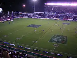 Rugby league football, usually called rugby league, is a full-contact team sport played with a prolate spheroid-shaped ball by two teams of thirteen on a rectangular grass field. It is one of the two major codes of rugby football, the other being rugby union. Rugby league is most prominent in England, Australia, New Zealand, and France, where the sport is played professionally.