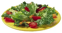 A salad is a dish consisting of mixed ingredients, frequently vegetables. They are typically served chilled or at room temperature, though some can be served warm. Condiments and salad dressings, which exist in a variety of flavours, are often used to enhance a salad.