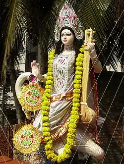 - There isn't a Hindu student who has not been encouraged to offer prayer to Goddess Saraswati especially during the school/college term. Goddess Saraswati is the consort of Brahma, the creator, and is worshipped as the Goddess of learning, wisdom, speech and music. Saraswati is worshipped regularly in the Fall during Navaratri, Hindus of Bengali tradition worship her during the Spring season.