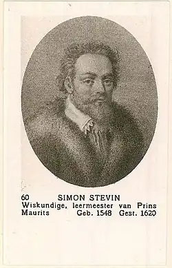 Simon Stevin (1548–1620), sometimes called Stevinus, was a Flemish mathematician, physicist and military engineer. He was active in a great many areas of science and engineering, both theoretical and practical.