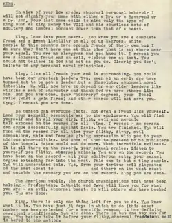 - I wanna tell you, ladies and gentlemen, that there's not enough troops in the army to force the Southern people to break down segregation and admit the nigger race into our theaters, into our swimming pools, into our homes, and into our churches.