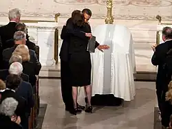 - To his harshest critics, who saw him as nothing more than a partisan lightning rod, that may sound foolish, but there are Republicans here today for a reason. They know who Ted Kennedy was. It’s not because they shared Ted’s ideology or his positions, but because they knew Ted as somebody who bridged the partisan divide over and over and over again, with genuine effort and affection, in an era when bipartisanship has become so very rare. They knew him as somebody who kept his word. They knew him as somebody who was willing to take a half a loaf and endure the anger of his own supporters to get something done. They knew him as somebody who was not afraid. And fear so permeates our politics, instead of hope. People fight to get in the Senate, and then they’re afraid. We fight to get these positions and then don’t want to do anything with them. And Ted understood, the only point of running for office was to get something done—not to posture; not to sit there worrying about the next election or the polls—to take risks. He understood that differences of party or philosophy could not become barriers to cooperation or respect.