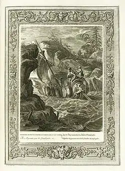 Then terror seized them, when with sudden shock The refluent billows forced them on the rock; With chilling fears was every nerve unstrung, While over their heads impending ruin hung. Before, behind, they saw the spacious deep, When instant, lo! a billow, vast and steep, Still rises higher, and still wider spreads, And hangs a watery mountain over their heads. The heroes stooped, expecting by its fall That mighty billow would overwhelm them all...