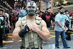 - [The agent pulls up the flap, revealing Bane with his mask]