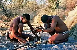 - And, of course they know what to do about water. For instance, in the early morning, you can collect dewdrops from leaves that were carefully laid out the previous evening. Or a plume of grass can be a reservoir. And if you have the know-how, an insignificant clump of twigs can tell you where to dig and you come to light with an enormous tuber. You scrape shavings off it with a stick that is split to give it a sharp edge. You take a handful of the shavings, point your thumb at your mouth and squeeze. They must be the most contented people in the world. They have no crime, no punishment, no violence, no laws, no police, judges, rulers or bosses. They believe that the gods put only good and useful things on the earth for them to use.