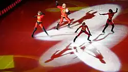 - [Resume documentary: Another striking, masked superhero, a woman this time. A title identifies her as Elastigirl]