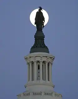 - He gazed up through the rain-speckled glass ceiling at the mountainous form of the illuminated Capitol Dome overhead. It was an astonishing building. High atop her roof, almost three hundred feet in the air, the Statue of Freedom peered out into the misty darkness like a ghostly sentinel. Langdon always found it ironic that the workers who hoisted each piece of the nineteen-and-a-half-foot bronze statue to her perch were slaves — a Capitol secret that seldom made the syllabi of high school history classes.
