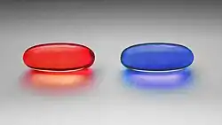 - Morpheus: [Leans in closer to Neo] That you are a slave, Neo. Like everyone else, you were born into bondage. Born into a prison that you cannot smell or taste or touch. A prison for your mind. [Pause] Unfortunately, no one can be... told what the Matrix is. You have to see it for yourself. [Opens his pillbox, empties the contents into his palms, outstretches his hands as clenched fists] This is your last chance. After this, there is no turning back. You take the blue pill, [opens his right hand revealing blue pill] the story ends, you wake up in your bed and believe whatever you want to believe. You take the red pill, [opens his left hand revealing red pill] you stay in Wonderland, and I show you how deep the rabbit hole goes. [Neo, after a pause, reaches for the red pill] Remember: all I'm offering is the truth. Nothing more. [Neo takes the red pill] ...Follow me. [Leads Neo into a room with Trinity, Dozer, Apoc and Switch busy with peculiarly improvised electronic equipment] Apoc, are we online?