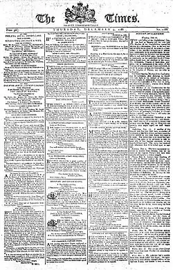The Times is a daily morning newspaper published in London. It was founded in 1785 as the Daily Universal Register and took its present title at the beginning of 1788. It has often been regarded as the newspaper taken by the British establishment. It was nicknamed "The Thunderer" for its strident editorialising.