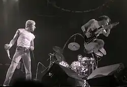The Who are an English rock band formed in 1964 by Roger Daltrey (lead vocals, harmonica and guitar), Pete Townshend (guitar, keyboards and vocals), John Entwistle (bass guitar, brass and vocals) and Keith Moon (drums and percussion). Considered one of the most influential rock bands of the 20th century, their contributions to rock music include the development of the Marshall stack, large public address systems, the use of synthesizers, Entwistle's and Moon's influential playing styles, Townshend's feedback and power chord guitar technique, and the development of the rock opera. They are cited as an influence by many hard rock, punk, power pop and mod bands. The Who were inducted into the Rock and Roll Hall of Fame in 1990.