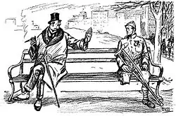 - I once felt all that kind of anger, which a man ought to feel, against the mean principles that are held by the Tories: a noted one, who kept a tavern at Amboy, was standing at his [[door], with as pretty a child in his hand, about eight or nine years old, as I ever saw, and after speaking his mind as freely as he thought was prudent, finished with this unfatherly expression, "Well! give me peace in my day."