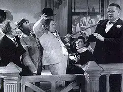 - Moe: (a'la a horror-show announcer) It must be three o'clock! (laughs evilly, and then Larry and Curly join in).