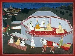 - "Vaisampayana said, 'Then clad in a cowherd's dress, and speaking the dialect of cowherds, Sahadeva came to the cowpen of Virata's city. And beholding that bull among men, who was shining in splendour, the king was struck with amazement. And he directed his men to summon Sahadeva. And when the latter came, the king addressed him, saying, 'To whom dost thou belong? And whence dost thou come? And what work dost thou seek? I have never seen thee before. O bull among men, tell me truly about thee.'