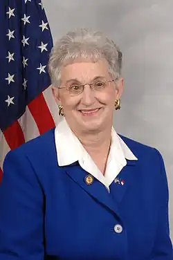 Virginia Ann Foxx (born June 29, 1943) is an American educator and businesswoman serving as the U.S. representative for North Carolina's 5th congressional district, which encompasses much of the northwestern portion of the state and the Gastonia area. Foxx is a member of the Republican Party and served as Secretary of the House Republican Conference from 2013 to 2017. She has been the ranking member of the House Committee on Education and Labor since 2019, and served as the committee's chair from 2017 to 2019.