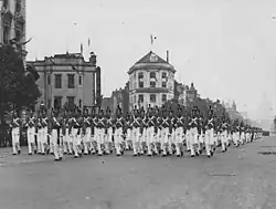That's the spirit of V.M.I.!- Chorus of "The VMI Spirit", lyrics by Benjamin Bowering, VMI Class of 1915, first printed in The Cadet, the VMI cadet newspaper, on 3 April 1916, as quoted by Thomas W. Davis, The Corps Roots the Loudest: A History of VMI Athletics (1986), Charlottesville: The University Press of Virginia, hardcover, p. 44