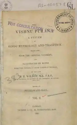 The Vishnu Purana (IAST:Viṣṇu purāṇa, Sanskrit: विष्णुपुराण) is one of the eighteen Mahapuranas, a genre of ancient and medieval texts of Hinduism.