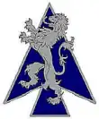 - A silver color metal and enamel device 1¼ iches (3.18 cm) in height overall consisting of a blue arrowhead on which is superimposed a silver lion rampant.