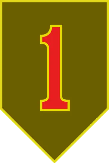 - Shoulder patch: Red Arabic numeral "I" on solid olive drab background.